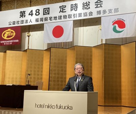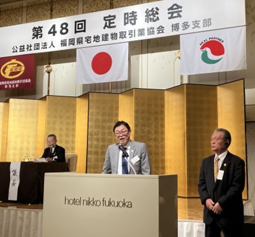令和7年4月25日(火)17:00よりホテル日航福岡にて、公益社団法人福岡県宅地建物取引業協会博多支部の第48回博多支部定時総会が開催されました。<>br />